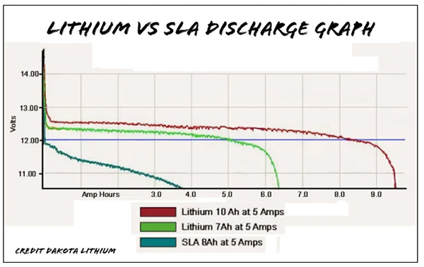 Графік розряду літію проти SLA